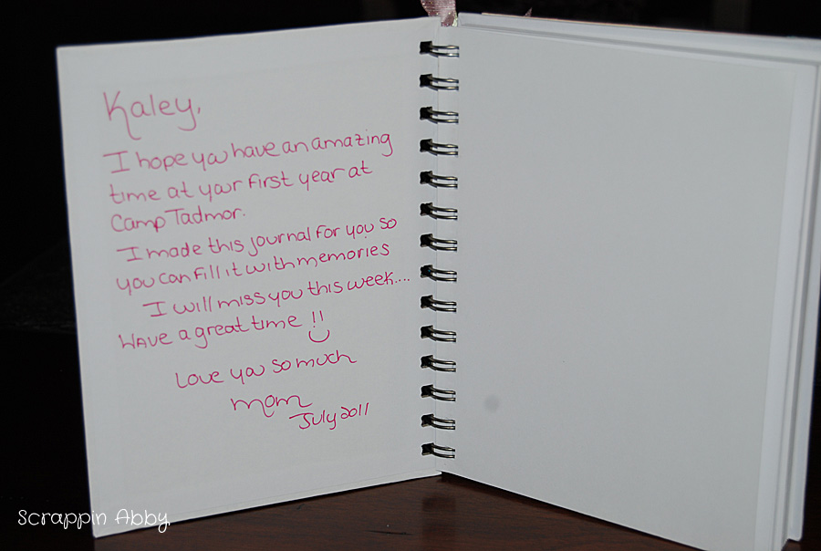 Just to show you what the inside of the journal looks like. I love that the pages are unlined...this will give Kaley a great space to write and add pictures of her memories from camp.